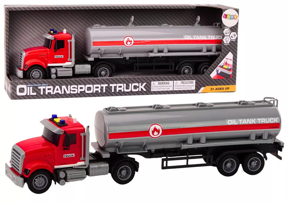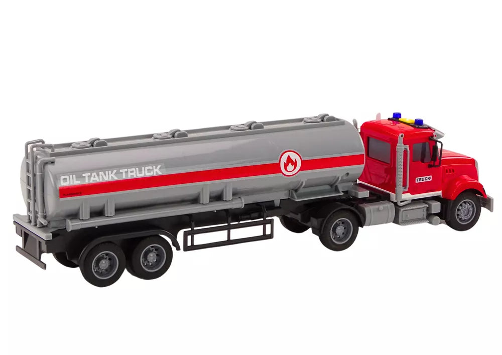 SPECIFIKACIJOS:Žaislo tipas: Sunkvežimis cisternaSpalva: raudonas sunkvežimis, sidabrinis sunkvežimis cisternaSavybės: - sunkvežimis su sunkvežimiu, - sunkvežimis su sunkvežimiu, - sunkvežimis su sunkvežimiu: Šviesos ir garso efektai, frikcinė pavara, nuimamas sunkvežimis-cisternaSunkvežimio su cisterna matmenys: Dydis: 48 cm x 13 cm x 8,5 cmPakuotės matmenys: 51,5 cm x 19 cm x 11,5 cmRINKINIO DALIS:Sunkvežimio tiNuimama cisternaBaterijos 3x AG13 (pridedamos)
