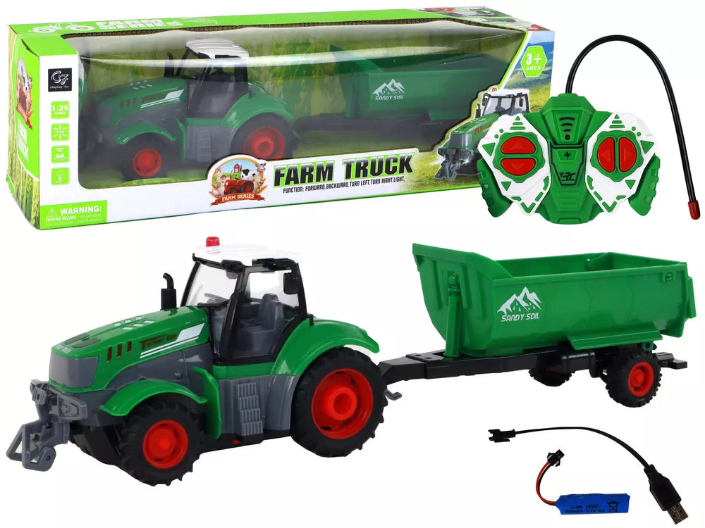 R/C traktorius su priekaba 1:24 Žalios spalvos žibintai