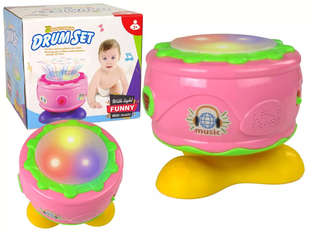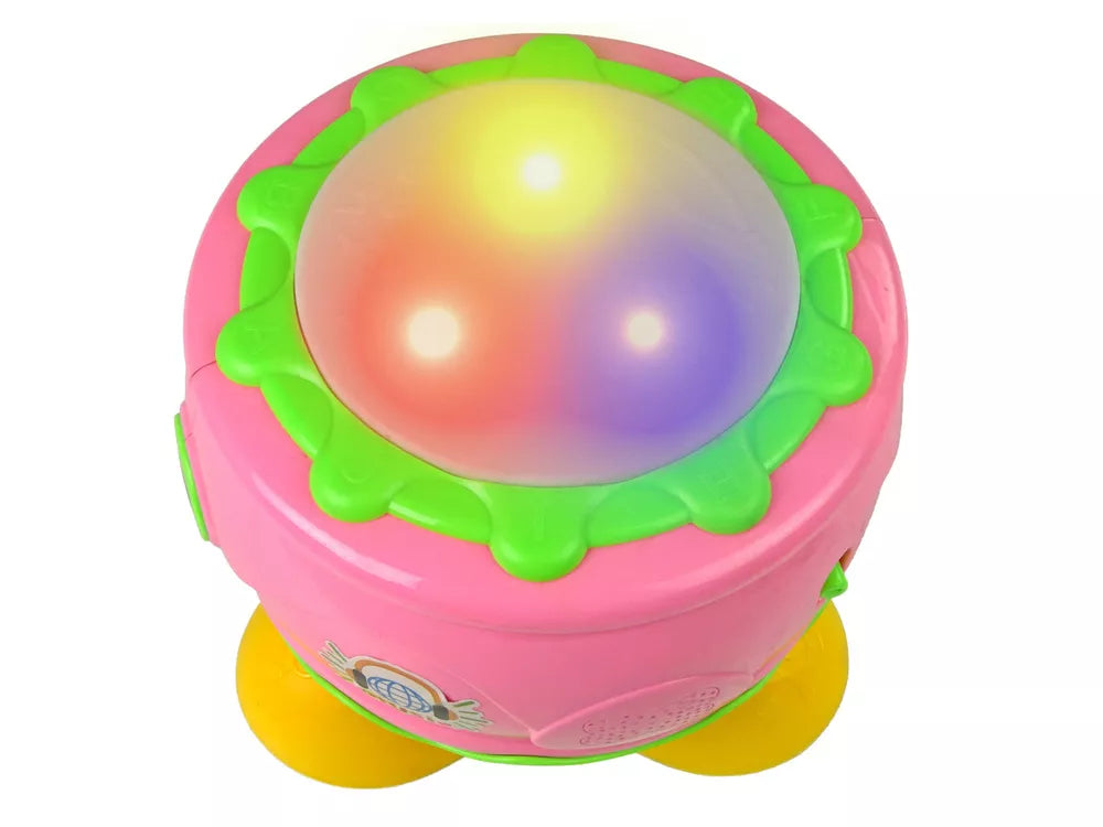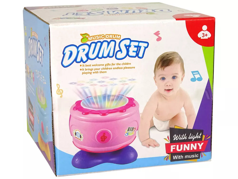 Muzikinis būgnas su garso reguliatoriumi, kuris užtikrins malonų žaislo naudojimą vaikui ir tėvams. Žaislą papuoši malonios ausiai melodijos ir mirksintys šviesos. Kiekvieną kartą, kai vaikas trenks į būgną, jis išgirs linksnią melodiją su būgnų ritmu ir mirksintis spalvotas šviesas. Būgnas gali pasisukti 360 laipsnių, o žaisdami girdėsite vaiko linksmybių juoką. Be to, ant būgno šonų yra du funkcinius mygtukus, įjungiančius įvairias melodijas ir šviesos efektus. Labai kruopščiai ir tiksliai pagamintas žaislas patenkins kiekvieną kūdikį. Vaiko raida ir ypač jo motorikos įgūdžiai labai skatinami aplinkos. Todėl labai svarbu, kad žaislai, su kuriais vaikas žaidžia, skatintų įgūdžių tobulinimą, mokytų naujų judesių ir įgūdžių.