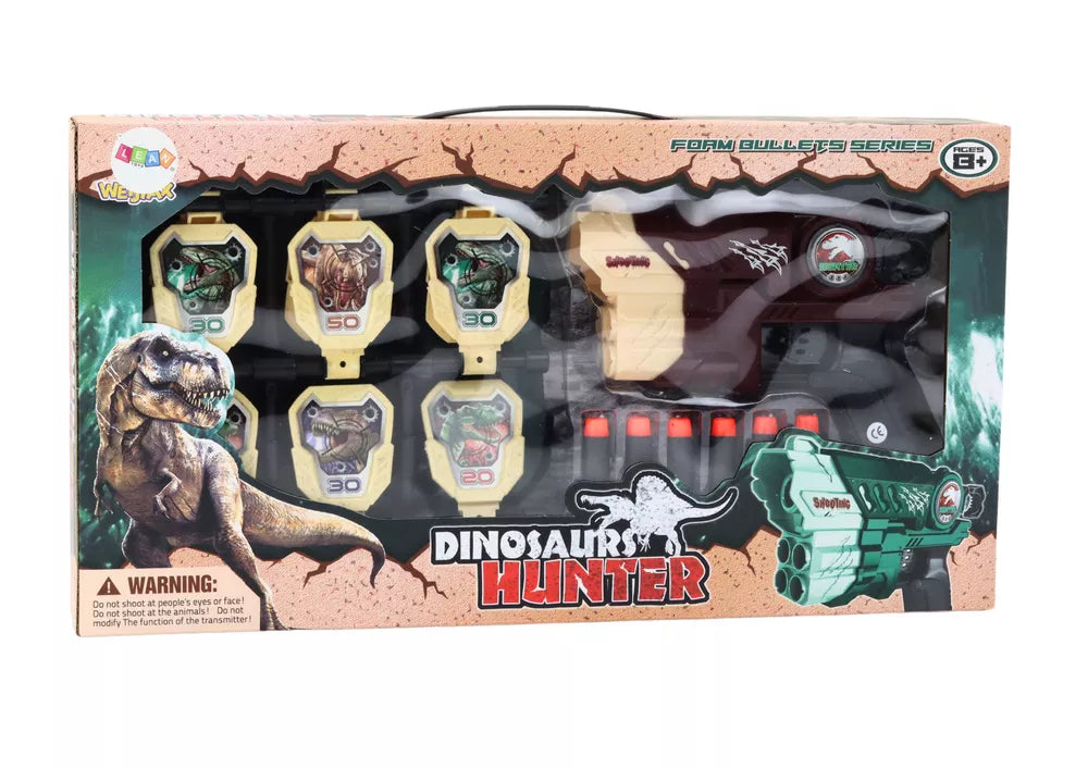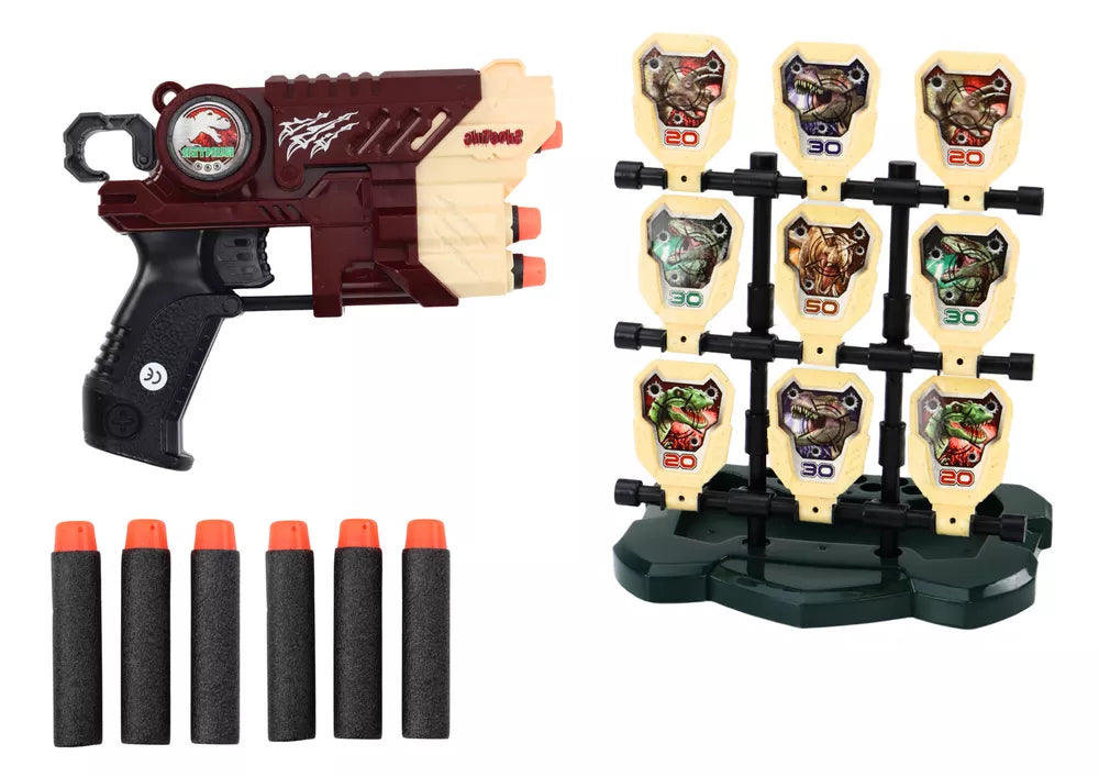 Dinozaurų temos šaudymo rinkinys yra puikus būdas sujungti pramogas su regėjimo ir judesių koordinacijos bei smulkiosios motorikos lavinimu. Galimybė žaisti vienam arba grupėje daro šį rinkinį puikiu pasirinkimu šeimos ir draugų varžyboms.