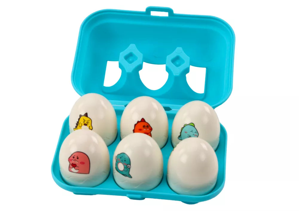 Šešių geometrinių dinozaurų kiaušinių rinkinys yra lavinamasis žaislas, jungiantis mokymąsi su pramogomis, idealiai tinkantis patiems mažiausiems. Jį sudaro šeši spalvingi kiaušiniai su skirtingomis geometrinėmis formomis, papuošti linksmais dinozaurų motyvais, kurie iš karto patraukia vaikų dėmesį. Atidarius, kiekviename kiaušinyje slepiasi mažas, spalvingas dinozauras, kuris suteikia netikėtumo ir džiaugsmo elementą.