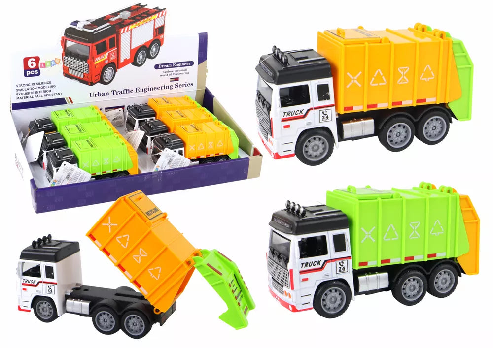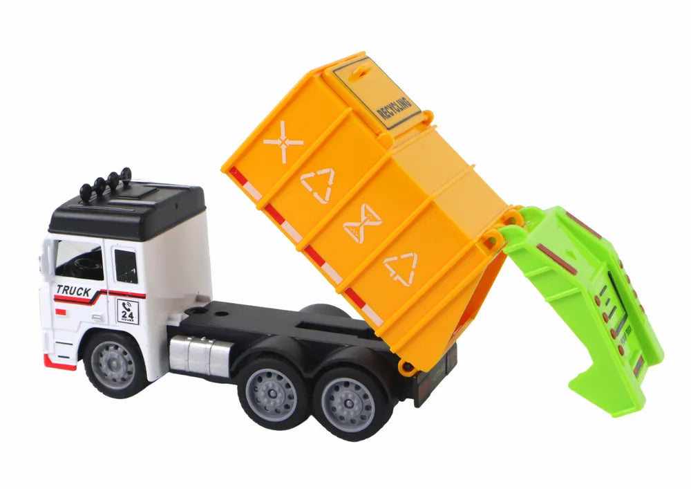 Šiukšliavežė turi frikcinę pavarą, todėl lengvai juda paviršiumi. Aukštos kokybės plastikas, iš kurio jis pagamintas, užtikrina jo patvarumą ir tvirtumą, todėl jis tarnaus ilgai.