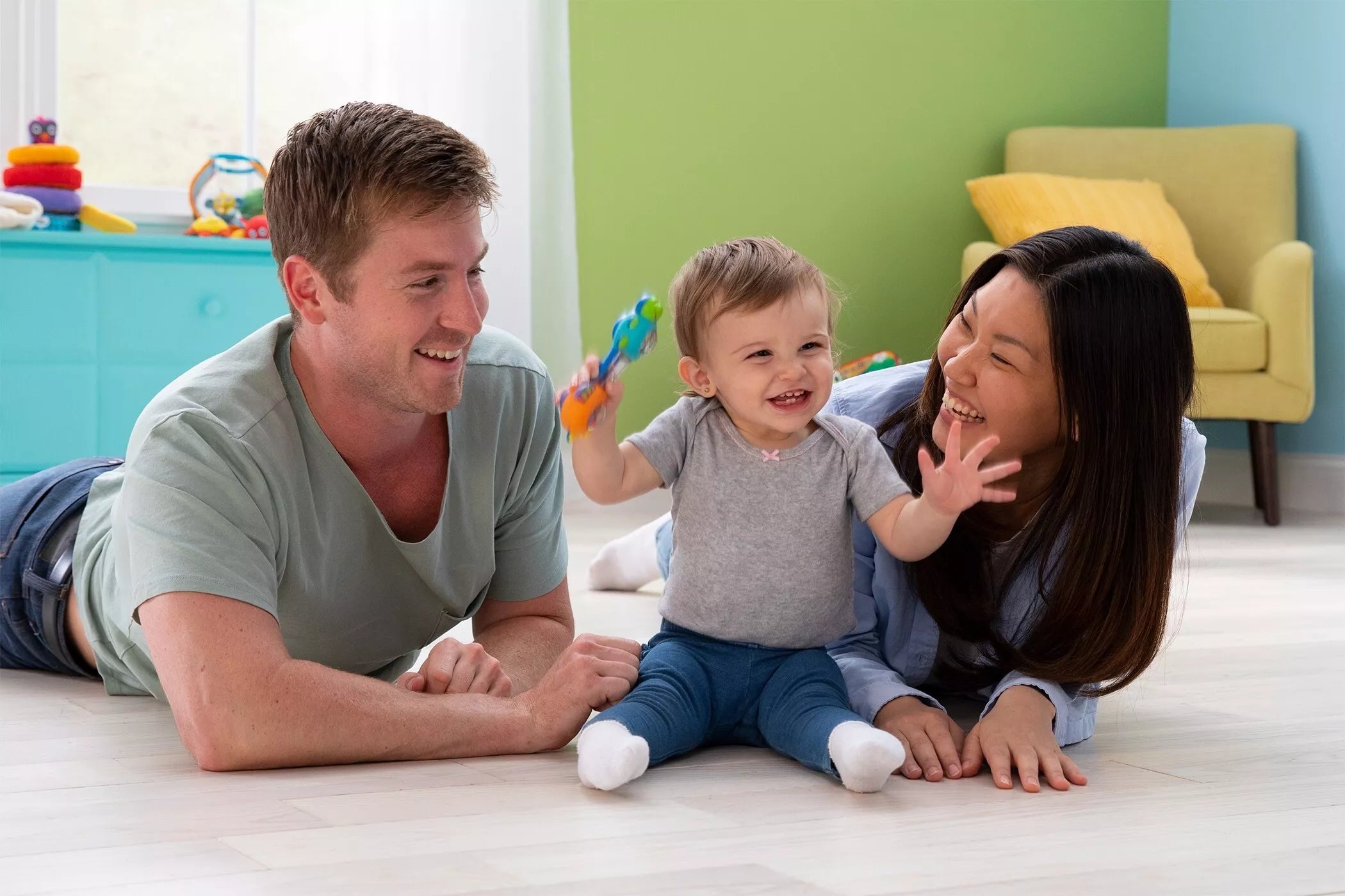 Spalvingas barškutis „Vėžlys ir sraigė“ (mėlynas-oranžinis)