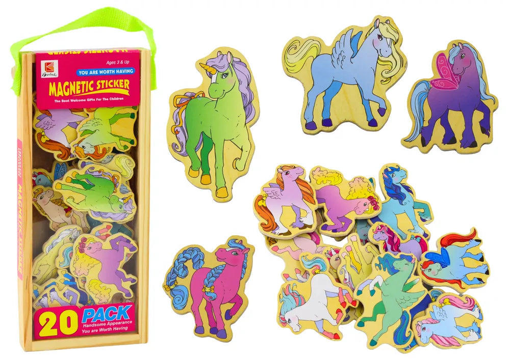 Medinių vienaragių spalvotų magnetukų rinkinys 20 dalių