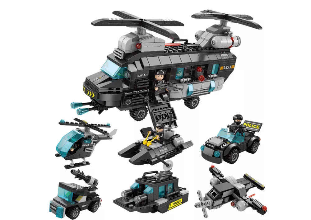 Rinkinyje galima sukurti net 19 skirtingų specialiųjų pajėgų transporto priemonių kombinacijų. Tai leidžia vaikams mėgautis neribotu kūrybiškumu ir valandų valandas trunkančiomis pramogomis. Galime sukurti specialiųjų tarnybų sraigtasparnį, daugiafunkcinį - idealiai tinkantį gelbėjimo užduotims ir specialiosioms operacijoms. Kovinis orlaivis greitas ir manevringas , aprūpintas naujausiomis kovinėmis technologijomis.