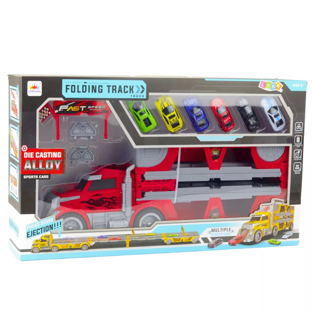 Sulankstomas sunkvežimio rinkinys su lenktynių trasa