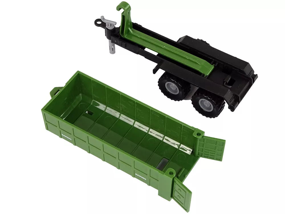 Transporto priemonės gale esanti priekaba yra nuimama. Ji sumontuota ant keturių ratų, kurie gali įveikti netikėtus manevrus. Ji skirta būtiniausiems daiktams vežti. Su šia priekaba galėsite iš laukų į savo ūkius atvežti derlių. Traktorius skleidžia tikrus važiavimo ir variklio garsus. Ant traktoriaus variklio dangčio yra mygtukas. Visa kabina atkurta identiškai kaip tikrame analoge.