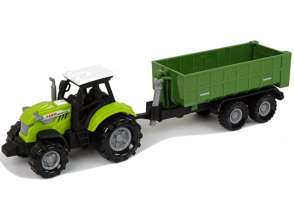 Kaip manote, ar jūsų vaikui patiktų žaisti ūkininką? Mes manome, kad taip! Žaisdamas namuose jūsų mažylis lengvai supras, koks yra daugybės pareigų kupinas gyvenimas ūkyje. Jį sudaro daugybė užduočių, todėl verta savo kolekcijoje turėti traktorių su specialia priekaba.