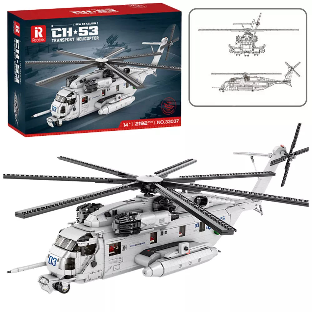 Tikroviškas transportinio sraigtasparnio CH-53 modelis - puikus pasirinkimas karinės aviacijos mėgėjams, technikos konstravimo ir konstravimo iš kaladėlių entuziastams. Dėl tiksliai atkurtų detalių, aukštos kokybės pagaminimo ir įspūdingo dydžio rinkinys suteikia valandų valandas įtraukiančio žaidimo ir puikiai papildo bet kurią kolekciją.