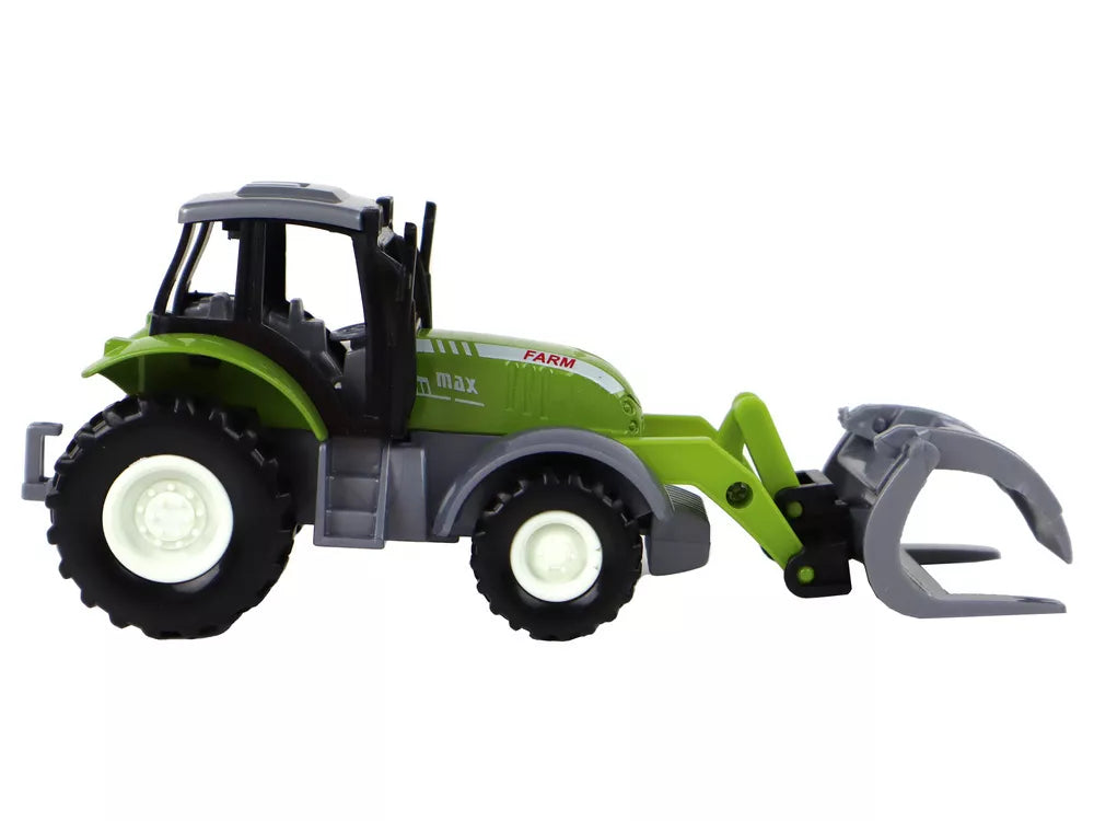 Šis žaislas vaizduoja traktorių ekskavatorių, kuris yra populiari žemės ūkio transporto priemonė, naudojama įvairiems darbams ūkiuose ir miškuose.