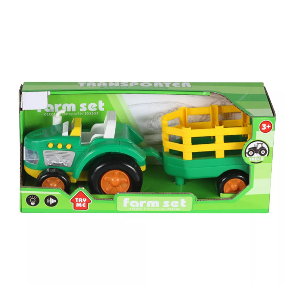 Traktoriaus rinkinys su priekaba, ūkininku ir gyvūnais yra puikus žaislas vaikams, mėgstantiems ūkininkavimo ir gyvūnų pasaulį. Dėl tikroviško dizaino, interaktyvių šviesos ir garso efektų bei judančių dalių traktorius siūlo smagų ir kūrybišką žaidimą, lavinantį mažųjų vaizduotę ir rankų darbo įgūdžius.